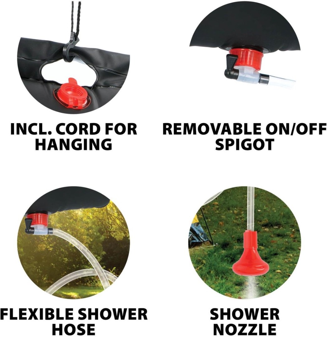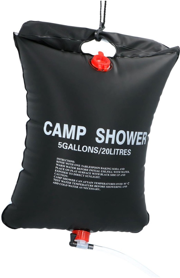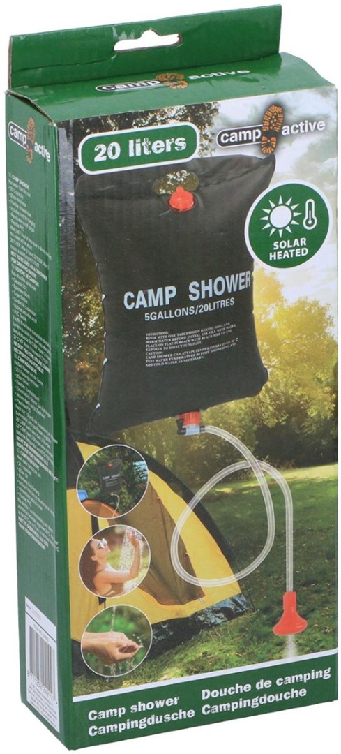 De Camp Active DWS-Solar camping douche is een draagbare douchezak met een inhoud van 20 liter. De zwarte kleur van de waterzak zorgt ervoor dat de warmte van de zon wordt aangetrokken en zo het water verwarmt. De douchezak heeft een handig ophangsysteem en is voorzien van een douchekop.